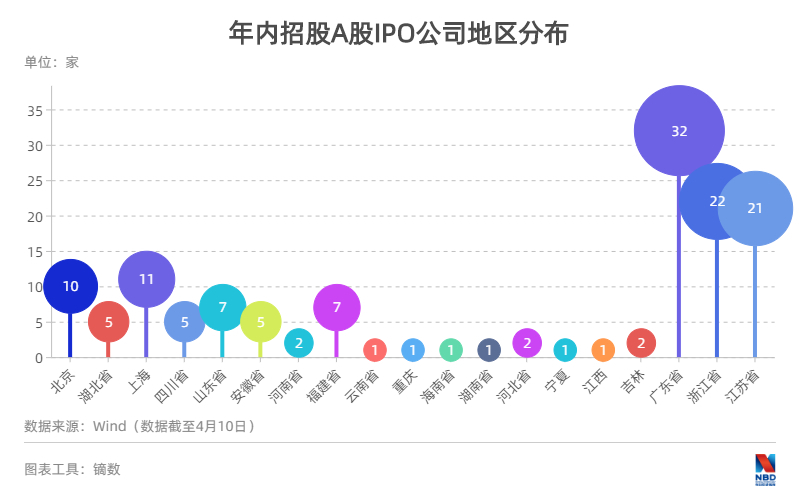 截至4月10日,年内A股已有137家公司完成招股。从地区分布看,广东、浙江、江苏分别以32家、22家和21家名列前三甲,合计占到整体数量半数以上,继续零跑全国,这三个地方也正好是我国经济大省。