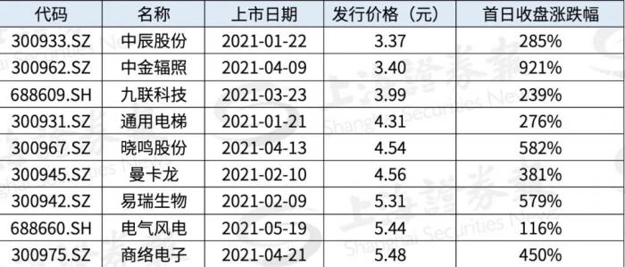 周一(5月24日)申购的创业板新股欢乐家的发行价较低,为4.94元/股,参照历史数据,发行价较低的新股上市后的涨幅一般较高。如发行价仅3.40元的中金辐照上市周日涨幅高达921%,创业板的晓鸣股份上市首日涨幅也高达582%。