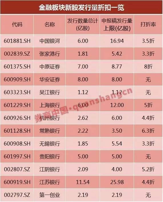 金融机构发行申报稿中的发行比例如果大幅高于10%下限,最终确定发行量打折是常有的事。所以众多拟上市金融机构会在上报申报稿确定发行量时,直接自打折扣,按较低发行比例发行是常有的事。