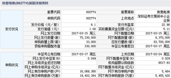 中国证券网讯根据交易所公告,快意电梯股份有限公司于2017年3月24日起在深交所中小板上市。