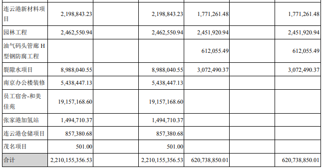 对此,上海港湾在回复记者采访时表示,2018年4月26日东华能源发布《关于在连云港建设码头和罐区项目的公告》,2019年2月上海港湾开工。但是根据东华能源发布的2019年年报,在建工程项目中涉及到连云港项目的资产余额并不高,合计仅在数百万元,这与上海港湾2019年针对该项目确认的收入金额7493.25万元相差巨大。