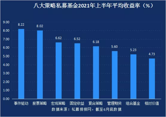 其中,股票策略产品以平均8.02%的收益率,夺得亚军位置,略低于事件驱动策略私募产品的平均8.22%。