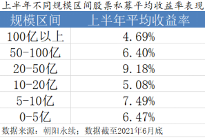 此外,分规模区间来看,今年上半年收益率最高的股票私募机构规模组别,则为20亿至50亿元。