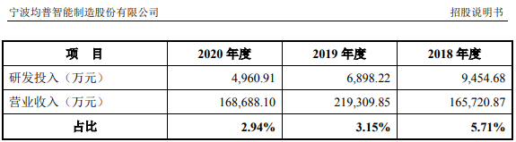 均普智能拥有高新技术企业,并由此享受15%的企业所得税优惠;但是招股书也披露到,2020年公司的研发投入占同年营业收入比重为2.94%,低于《高新技术企业认定管理办法》中设定的3%的下限标准。