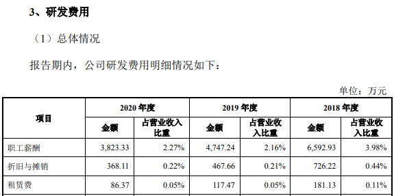 不仅如此,以公司2020年末513人研发设计人员计算,同年研发费用中包含的职工薪酬金额仅为3823.33万元,折合人均仅在7万元左右、人均每月人力成本仅略超过五千元。
