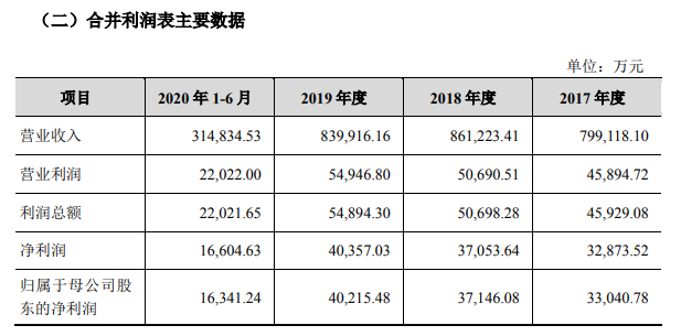 财务数据显示,2017年~2020年上半年,菜百股份实现营业收入79.91亿元、86.12亿元、83.99亿元、31.48亿元;同期对应的归属于母公司股东的净利润3.30亿元、3.71亿元、4.02亿元、1.63亿元。