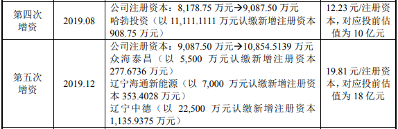 根据招股书披露,哈勃投资于2019年8月以 11111.11万元认缴天岳先进新增注册资本 908.75万元,增加价格为12.23元/注册资本,对应投前估值为 10 亿元。而仅仅相隔了4个月的2019年12月,海通新能源、辽宁中德认缴天岳先进新增注册资本时,增资价格就高达19.81元/注册资本,对应投前估值为18亿元。也即在短短4个月,天岳先进的估值就增加了80%。