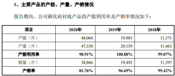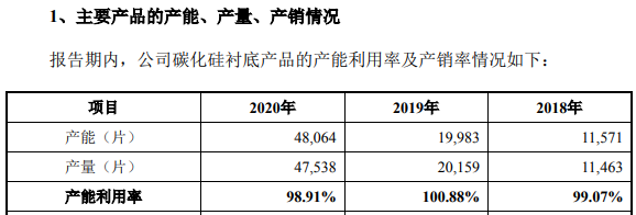 而在此基础上,从天岳先进披露的产能数据来看,2018年碳化硅衬底产品产能还仅为11571片,尚不足2020年产能的四分之一,这一比率与碳化硅晶体生长设备持有金额的比例并不匹配。对此,天岳先进在回复采访时并未作出解释。