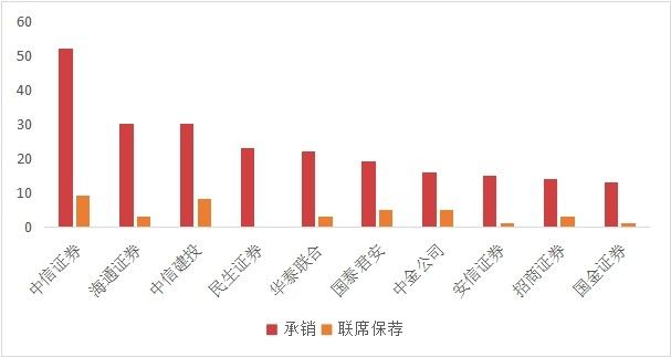 这十大券商分别是:中信证券(25.61亿元)、海通证券(14.24亿元)、中金公司(11.24亿元)、民生证券(10.70亿元)、中信建投(10.41亿元)、华泰联合(9.70亿元)、国泰君安(8.76亿元)、安信证券(6.26亿元)、招商证券(5.92亿元)、国金证券(4.97亿元)。2021年前三季度,中信证券、民生证券的承销保荐收入已赶超2020年度。中信证券、民生证券2020年承销保荐费分别为23.15亿元、9.66亿元。