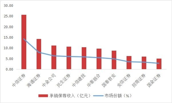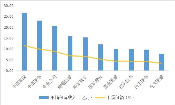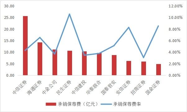 2021前三季度IPO承销保荐收入前十的券商承销保荐费率