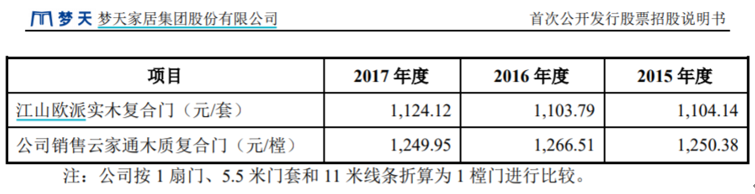 不仅如此,根据招股书第142页披露,江山欧派(603208)是云家通的主要供应商之一,其实木复合门与公司销售给云家通的木质复合门为同类可比产品,而且在2015年到2017年期间,梦天家居销售的木制复合门价格,甚至还高于江山欧派销售的实木复合门。