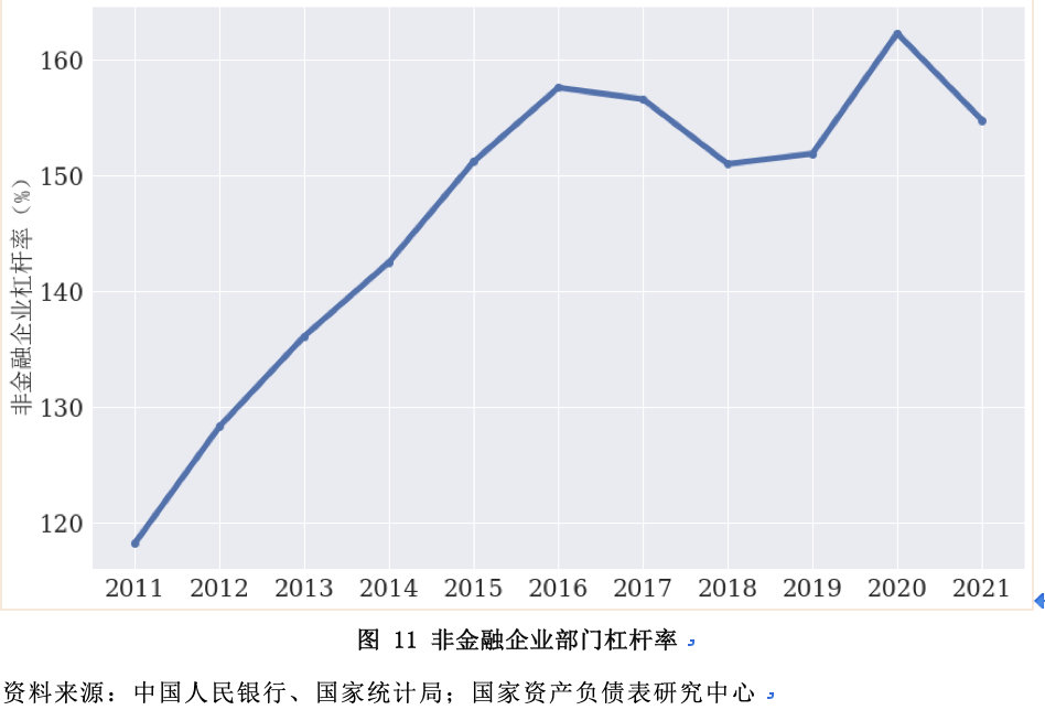 不过,《报告》提到,随着政府在支持市场主体的政策力度上有所加大以及预期的趋稳,企业投资增速有望提升,企业部门杠杆率或将在2022年稳中有升。