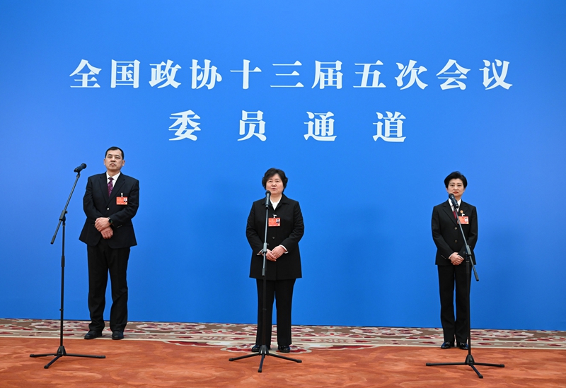 3月4日,全国政协十三届五次会议第一场“委员通道”采访活动在北京人民大会堂新闻发布厅举行。 新华社记者 金良快 摄