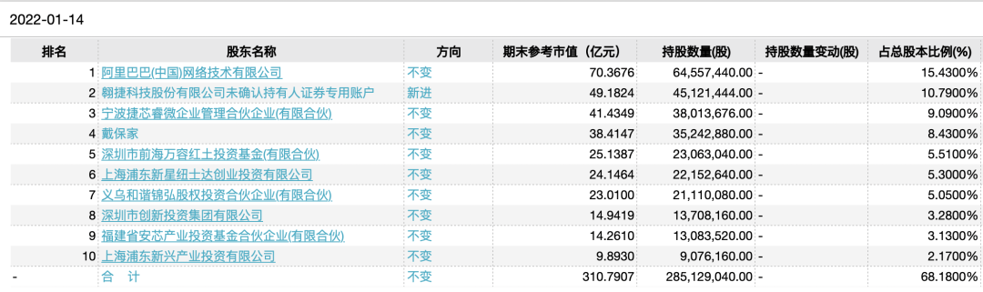 值得注意的是,阿里巴巴(中国)网络技术有限公司是翱捷科技-U的第一大股东,持股比例15.43%。按最新收盘价计算,阿里持股市值为41亿元,相比发行价已缩水65亿元。