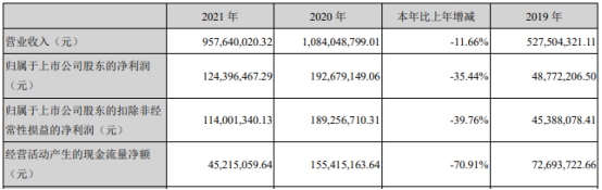 昨日晚间,奥尼电子(301189.SZ)发布了上市后的首份年报。2021年,公司实现营业收入9.58亿元,同比减少11.66%;归属于上市公司股东的净利润1.24亿元,同比减少35.44%;归属于上市公司股东的扣除非经常性损益的净利润1.14亿元,同比减少39.76%;经营活动产生的现金流量净额4521.51万元,同比减少70.91%。
