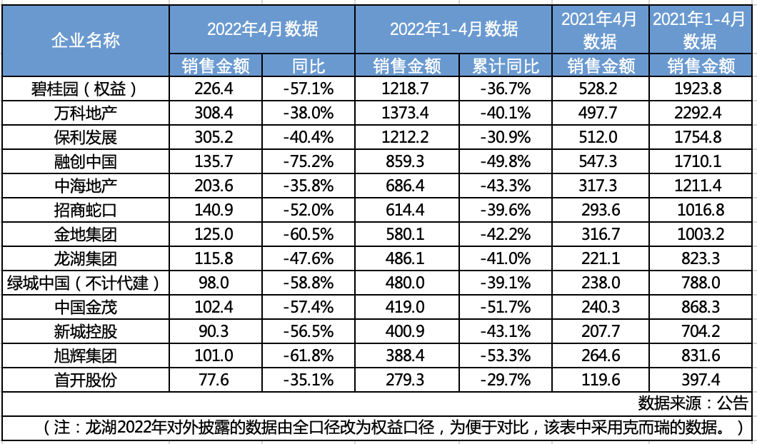 从销售规模上来看,4月单月,万科308.4亿元的销售额排名行业第一;保利发展以305.2亿元的销售规模位列第二,已远超“老对手”融创;另据克而瑞数据,碧桂园4月单月全口径销售额约为305亿元,位列第三。