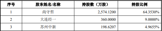 其中,尚守哲是第一大股东,持股比例为64.35%。大连经一紧随其后,持股比例为9%。