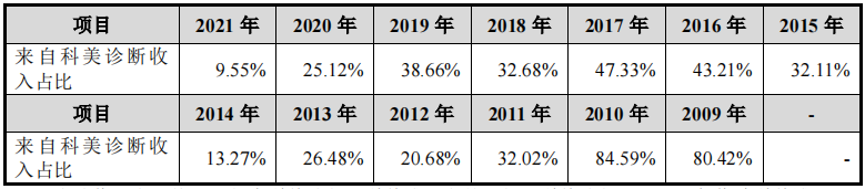 值得注意的是,尽管声称不存在对单一客户的重大依赖,但凯实生物来自科美诊断的收入占比常年远超同业水平。