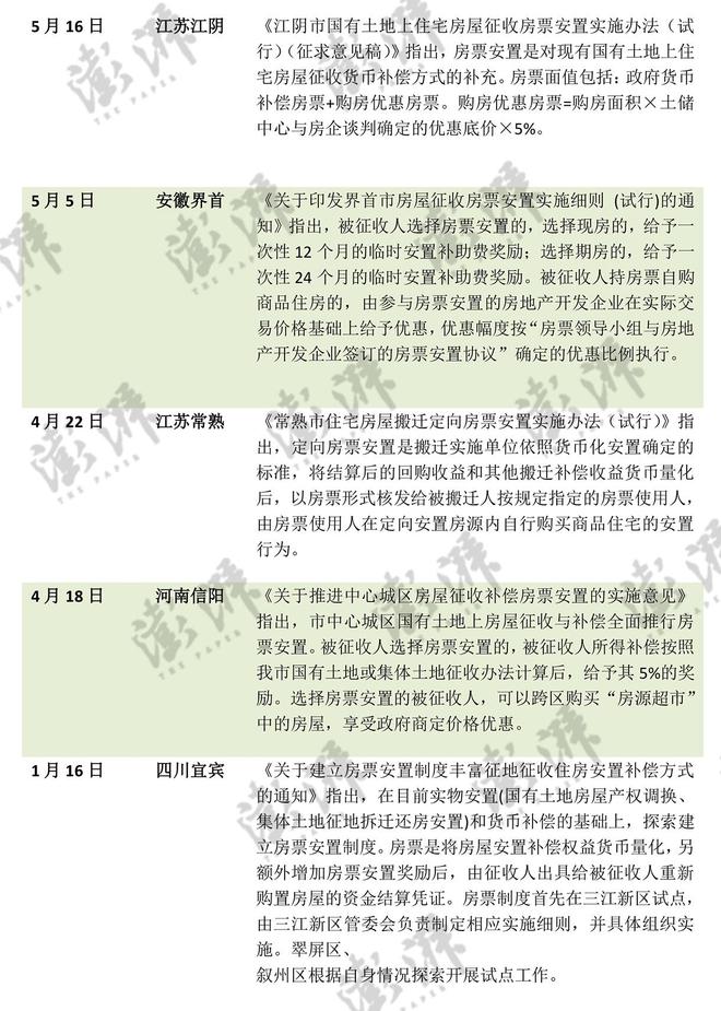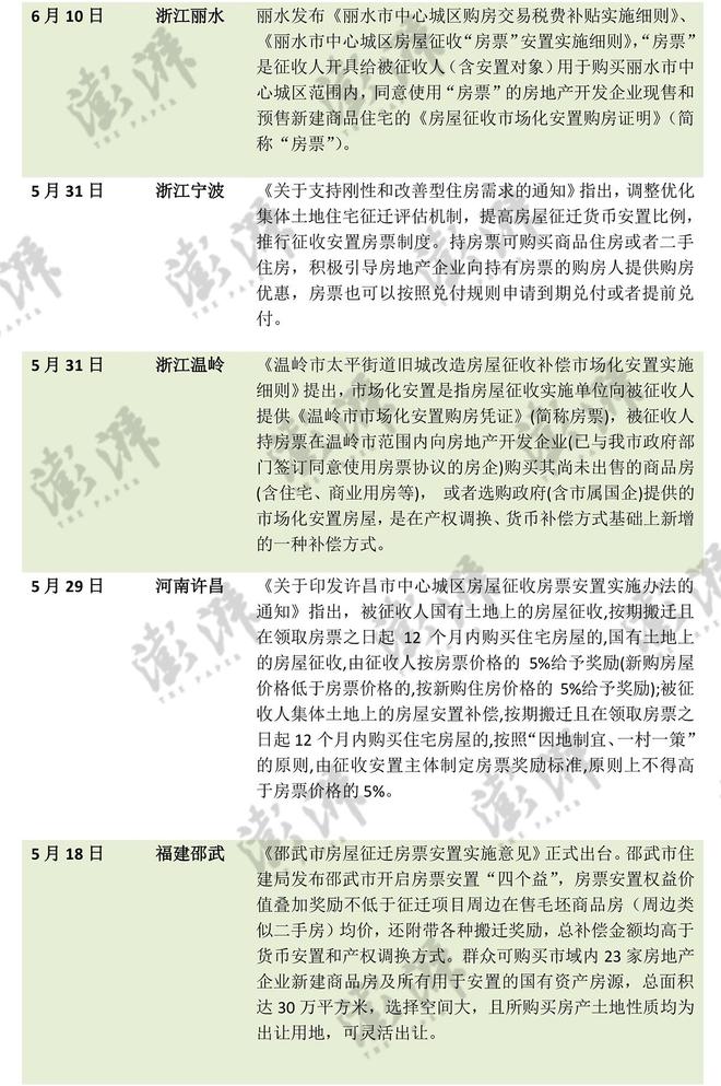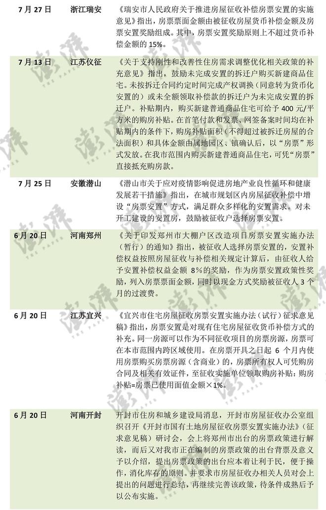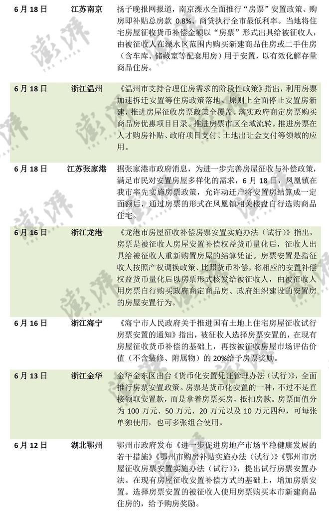 据澎湃新闻不完全统计,仅今年以来,至少包括河南郑州、江苏宜兴、河南开封、江苏南京、浙江温州、江苏张家港、浙江龙港、浙江海宁、浙江金华、湖北鄂州、浙江丽水、浙江宁波、浙江温岭、河南许昌、福建邵武、江苏江阴、安徽界首、江苏常熟、河南信阳、四川宜宾、安徽潜山、江苏仪征、浙江瑞安、浙江衢州、贵州贵阳、湖北麻城、浙江永康、安徽蚌埠、河南驻马店、江苏泰州等30城探索实施相关“房票”安置政策。