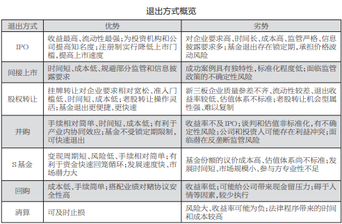 (五)S基金交易退出。S基金(Secondary Fund)在私募股权基金二级市场投资,即从原投资人手中直接收购公司股权或基金份额。近几年S基金在国内快速起步,去年证监会先后批复同意在北京股权交易中心和上海区域性股权市场开展私募股权投资和创业投资份额转让试点,意味着国内S基金迎来快速发展窗口期。