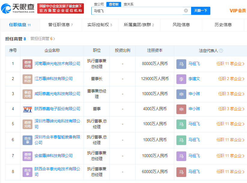 但在《第二轮审核问询函中有关财务事项的说明》中,大华会计师事务所称,马祖飞于2020年6月从发行人处离职,这与招股书披露的离职时间并不相符。另外,《第二轮审核问询函中有关财务事项的说明》中,大华会计师事务所称,马祖飞目前任职公司为5家,且任职公司的设立时间均在马祖飞从发行人离职之后。而公开信息显示,马祖飞目前在8家公司任职,且2020年5月26日,马祖飞已经是同业公司陕西泰嘉电子股份有限公司董事,2020年9月,马祖飞成为同业竞争企业河南尊绅光电技术有限公司法定代表人。2021年担任咸阳泰嘉光电科技有限公司董事总经理。但上述信息新相微并未披露。