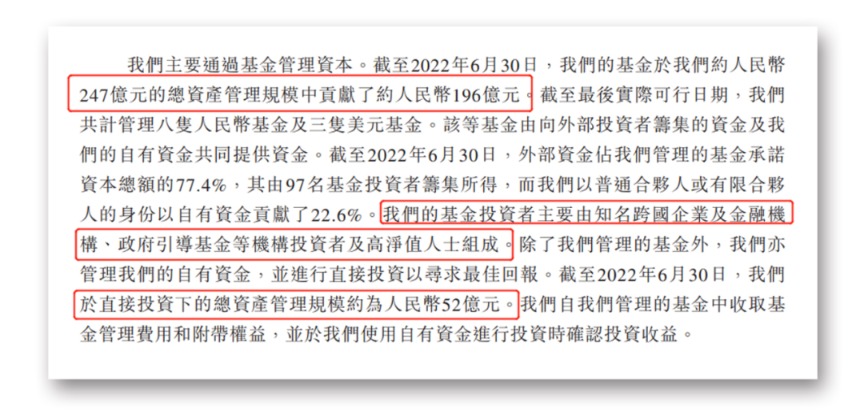 聆讯资料显示,截至6月30日,天图投资的总资产管理规模为247亿元,其中包括通过并表基金管理的116亿元、通过未并表基金管理的80亿元及直接投资52亿元。另外,来自外部投资者的募集资金达104亿元,其中机构投资者占95.5%。