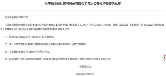 又有券商股要上市了!信达证券IPO申请获证监会批复 募资规模大缩水