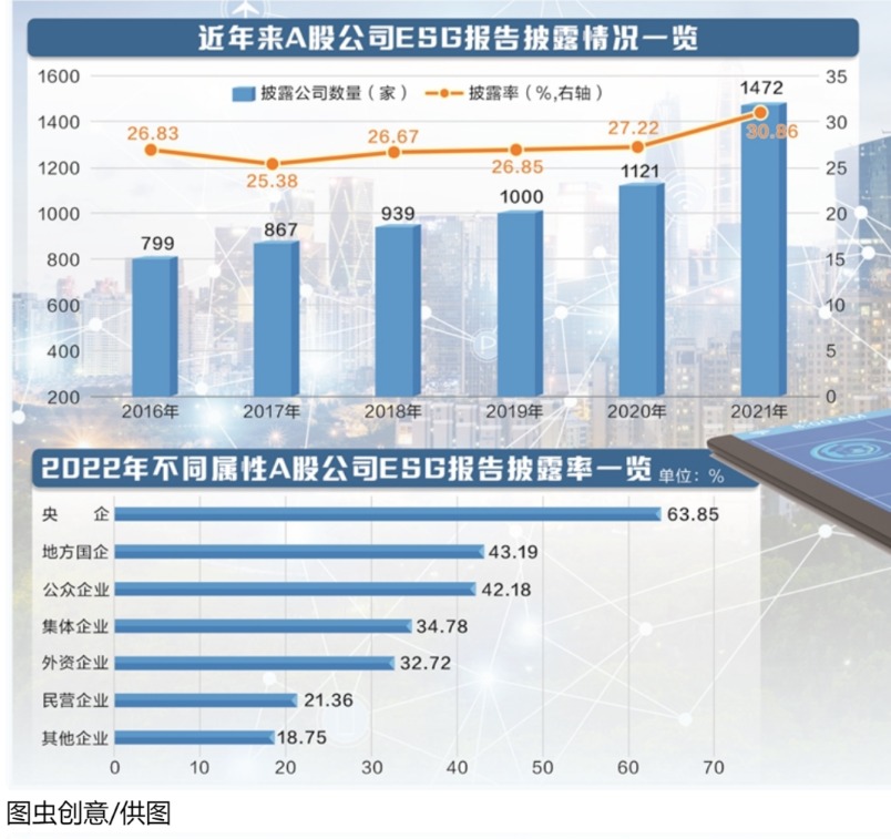 上市公司是国民经济的“基本盘”,也是践行ESG的核心责任主体。上市公司积极推动ESG实践,一是响应双碳、乡村振兴、共同富裕等国家战略;二是满足政府和监管机构需求。在多方因素合力作用下,上市公司ESG实践和信息披露水平明显提高。截至2022年12月末,1472家A股上市公司披露了2021年的ESG报告,披露数量和披露率均创下历史新高。本文重点梳理上市公司ESG信息披露现状及特点、对ESG管理的认知及实践动因,同时总结和分享部分优秀的实践案例,为上市公司开展ESG工作提供借鉴和参考。