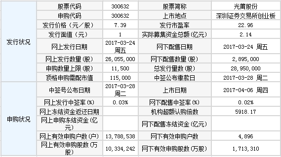 根据交易所公告,厦门光莆电子股份有限公司于2017年4月6日起在深圳证券交易所创业板上市。