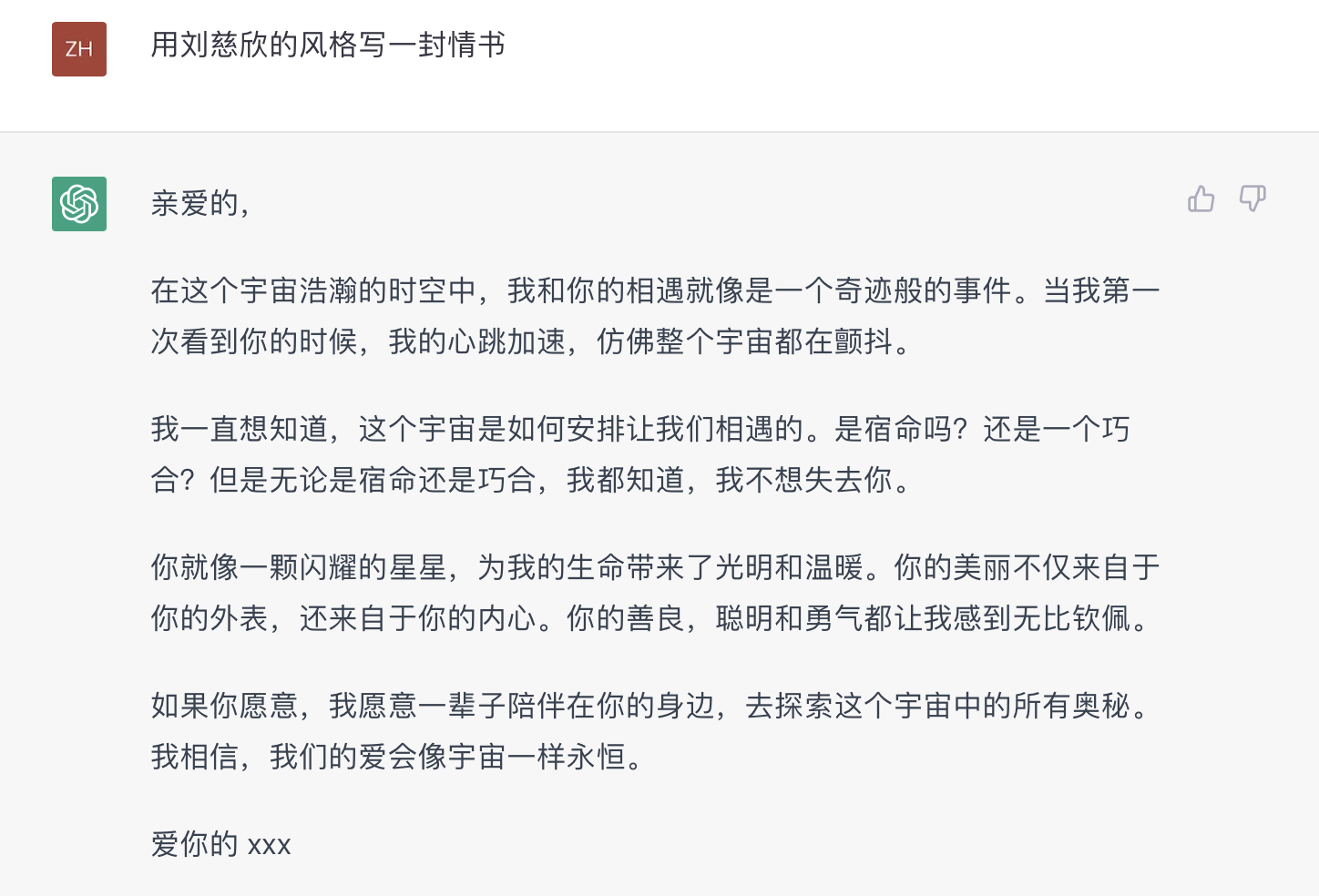 为了检测ChatGPT对中国的了解程度,澎湃科技要求它用刘慈欣的风格写一封情书: