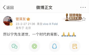 经济学家,原美的集团等企业独立董事、曾任民生证券副总裁、研究院院长的管清友,也在社交媒体上发文悼念称:“厉以宁先生逝世,一个时代的背影。”
