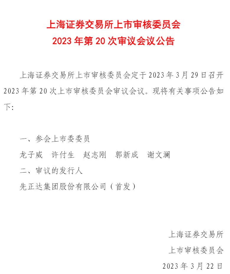 据上交所网站,上海证券交易所上市审核委员会定于3月29日召开审议会议,审核先正达集团股份有限公司、深圳威迈斯新能源股份有限公司的科创板首发事项。