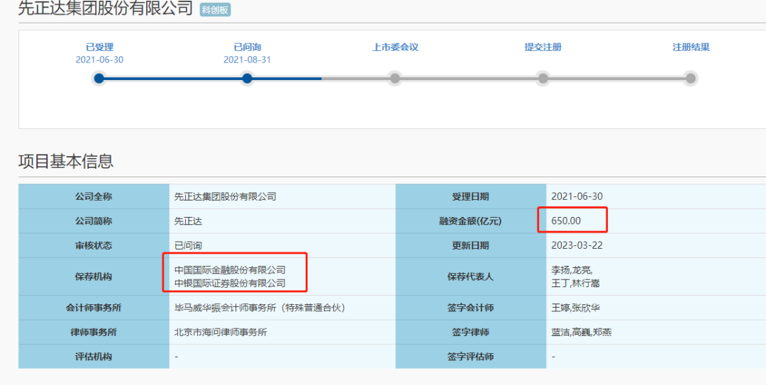 上交所网站显示,先正达集团计划募资650亿元。保荐机构为中国国际金融股份有限公司、中银国际证券股份有限公司。