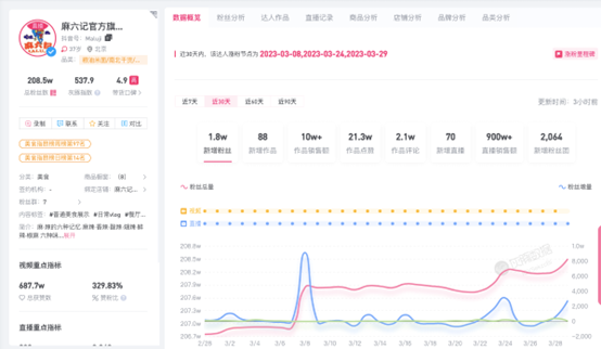 证券时报·e公司记者注意到,在抖音平台,麻六记拥有多个认证账号。其中主账号“麻六记官方旗舰店”拥有208.5万粉丝。而声明中提到的“麻六记生鲜旗舰店”仅有5.6万粉丝。