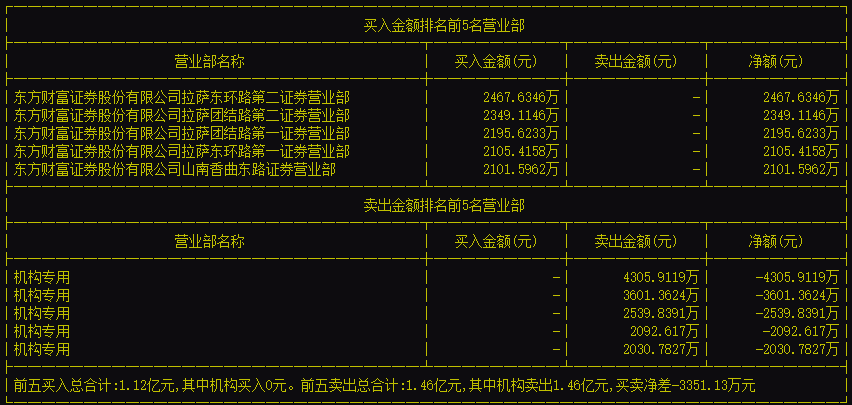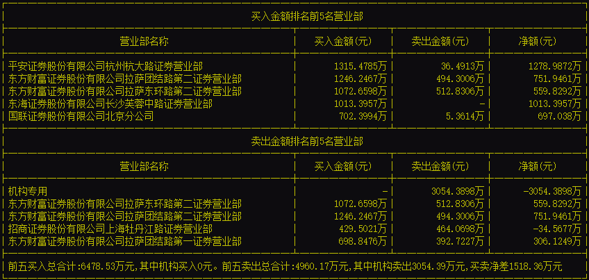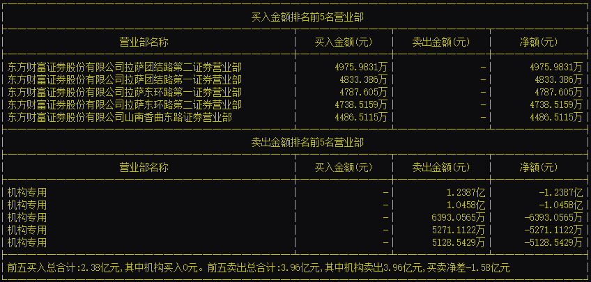具体来看,陕西能源的买入前5营业部均为东方财富证券旗下的营业部,合计买入4.85亿元,合计卖出9454万元,净买入额为3.91亿元。
