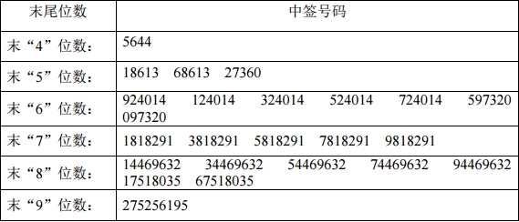 凡参与本次网上定价发行申购杭州长川科技股份有限公司首次公开发行A股股票的投资者持有的申购配号尾数与上述号码相同的,则为中签号码。中签号码共有38100个,每个中签号码只能认购500股杭州长川科技股份有限公司A股股票。