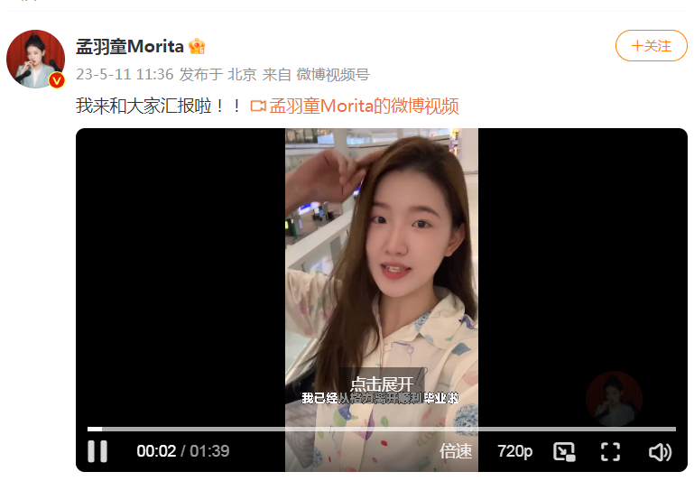 刚刚,孟羽童在个人微博发视频回应从格力离职。