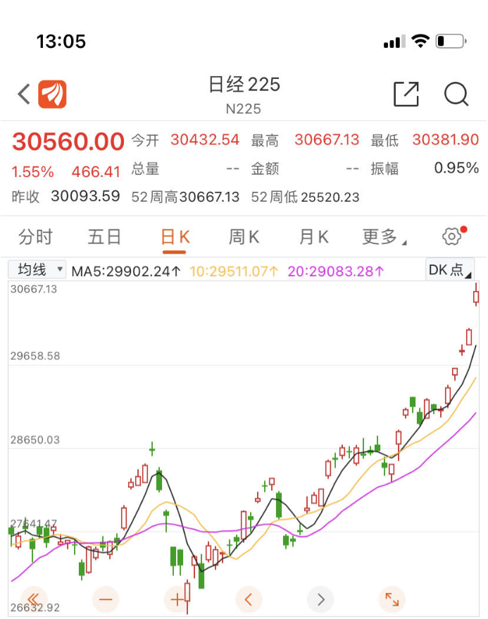 截至18日发稿,日经225指数暂报30560点,涨1.55%