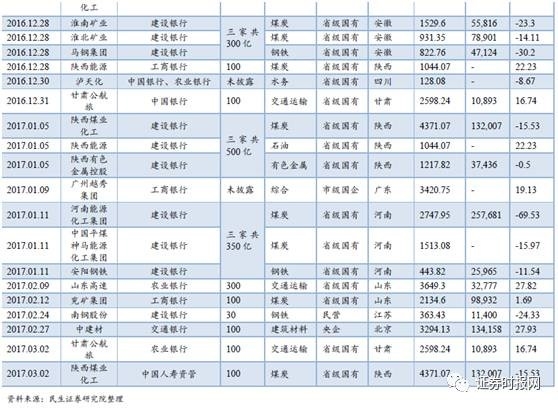 除了上述3类方式上市公司涉及债转股之外,民生证券日前发布的研究报告当中,按照“强周期+产业性实体龙头+国资背景+拥有优质资产+上市平台”等关键词,梳理出来的债转股企业名单,也值得重点关注。
