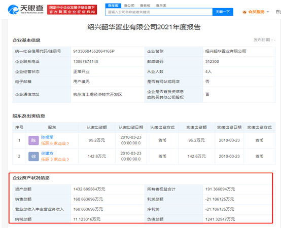 另外,国祥股份披露,韶华置业是公司曾参股企业,招股书称,2021年,该公司总资产1380.26万元,实现盈利3.99万元,但韶华置业对外披露的2021年财务数据却显示,截至2021年末,公司总资产1432.69万元,当年亏损21.1万。这与招股书数据自相矛盾,国祥股份也未就差异作出说明。