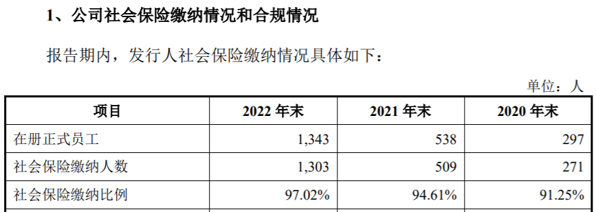 另据招股书披露截止到2022年末西典新能的在册正式员工人数为1343人,其中社保缴纳人数为1303人。西典新能除母公司之外,还拥有两家全资子公司,分别为2022年4月成立的西典汽车电子,和2022年10月成立的成都西典,根据《天眼查》查询显示,西典新能母公司2022年年报公布的社保缴纳人数为548人、西典汽车电子2022年年报公布的社保缴纳人数为825人,仅这两家公司社保缴纳人数合计就高达1373人,显著超过了招股书披露人数。