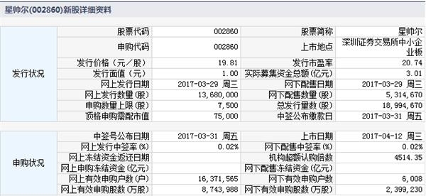 根据交易所公告,杭州星帅尔电器股份有限公司于2017年4月12日起在深圳证券交易所中小企业板上市。