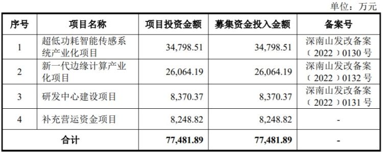 招股书显示,矽递科技计划募资约7.75亿元,主要募投项目包括超低功耗智能传感系统产业化项目、新一代边缘计算产业化项目、研发中心建设项目、补充营运资金项目。