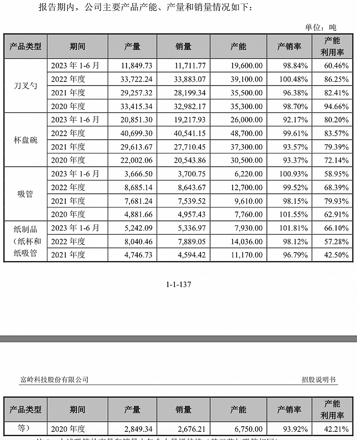 不过从产能利用率数据的披露来看,2023年上半年富岭股份也并非满产状态,其中刀叉勺产能利用率为60.46%,杯盘碗位80.2%,吸管为58.95%,纸制品(纸杯和纸吸管)为66.1%。如何消化新增产能,也将是富岭股份所面临的课题。对此,公司也做了风险提示,表示若在募集资金投资项目建成后不能尽快达产或者不能通过产能消化增加营业收入等方式提高募投项目的盈利能力,则公司存在固定资产折旧增加而导致相关业务整体毛利率和净利润下降的风险。