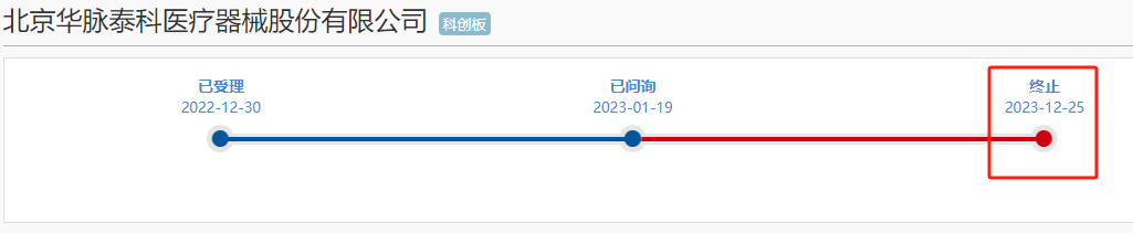 根据上交所官网的披露,因华脉泰科及其保荐人中信证券撤回发行上市申请,根据相关规定,上交所终止其发行上市审核。华脉泰科于2022年底上市申请获受理,3月底回复首轮问询,此后审核就处于停滞状态,直到如今撤回。