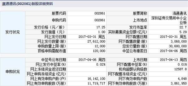 根据交易所公告,湖北瀛通通讯线材股份有限公司于2017年4月13日起在深圳证券交易所中小企业板上市。