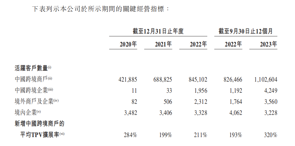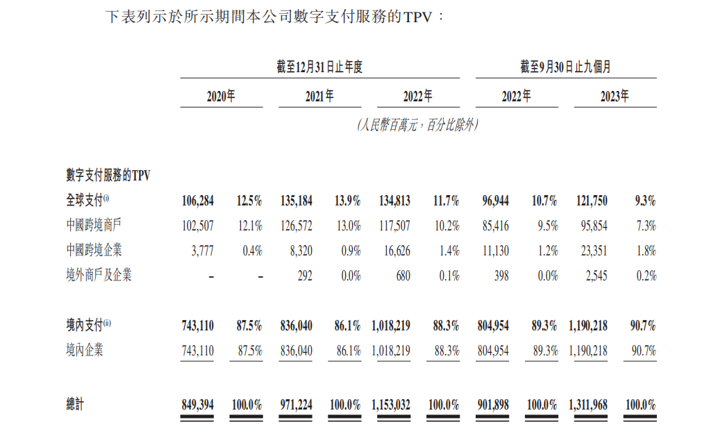 连连数字称,由于与全球支付相比,境内支付的费率通常较低,尽管于报告期内,境内支付贡献了本公司支付服务绝大部分的TPV,但境内支付的收入贡献相对较低。