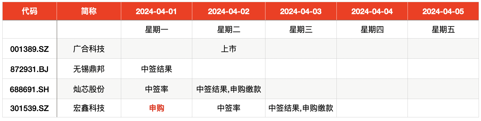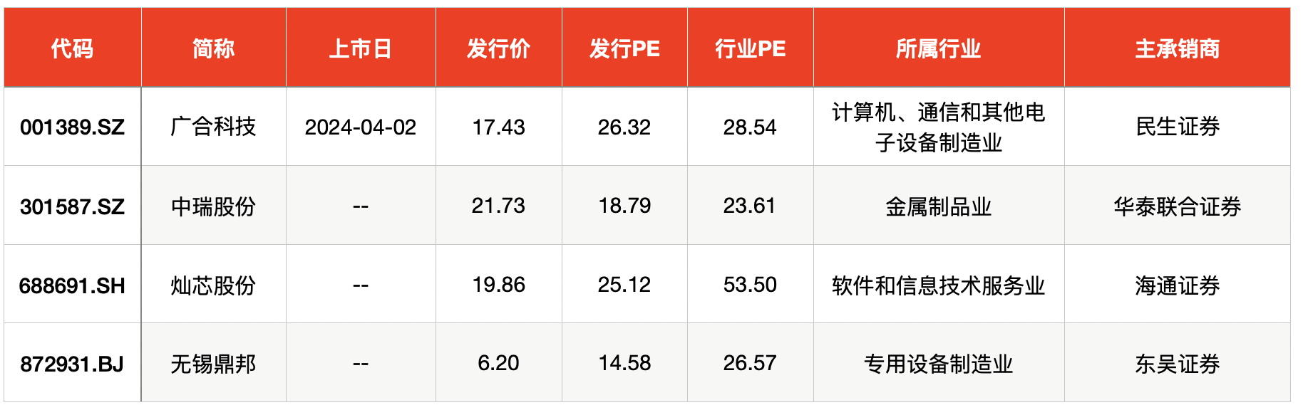 根据新股上市安排,广州广合科技股份有限公司(简称“广合科技”,001389.SZ)将于4月2日上市。
