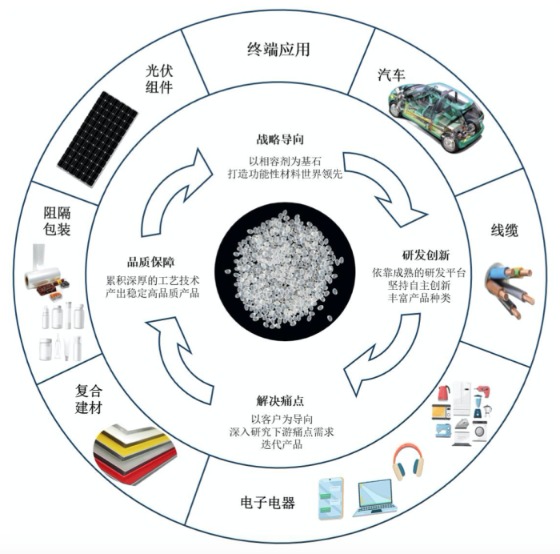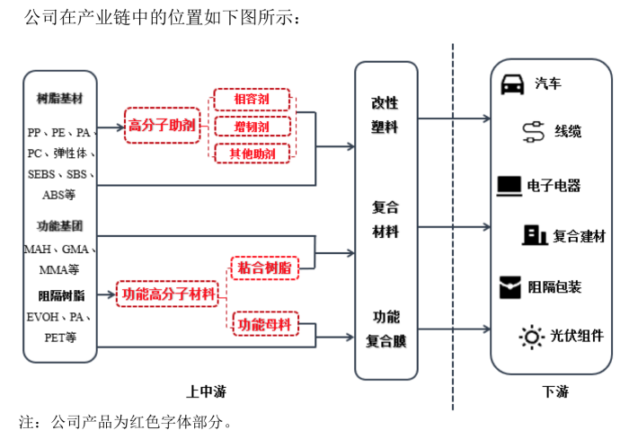 据悉,能之光从事高分子助剂及功能高分子材料的研产销,是国家级专精特新“小巨人”企业。该公司以高分子材料接枝改性技术为基础,深耕相容剂、增韧剂和粘合树脂等功能高分子产品,自主研发出了300多个牌号的产品,为客户提供不同性质材料间相容或粘合所需的高分子材料及解决方案。产品应用于改性塑料、复合材料和高分子功能膜等材料,应用领域覆盖汽车、线缆、电子电器、复合建材、阻隔包装、光伏组件等多个终端市场。公司自主研发取得发明专利授权49项。