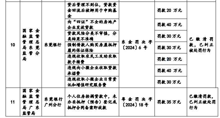 合规方面,据招股书披露,从2021年到招股书签署日,东莞银行报告期内受到的行政处罚共计11宗,涉及罚款金额合计586.73万元。具体来看,公司存在多次个人贷款违规流入房地产的情况,而且今年被处罚所涉及的问题已经有8项,包括贷款被挪用于申购基金以及向“四证”不全的房地产企业发放贷款等等。